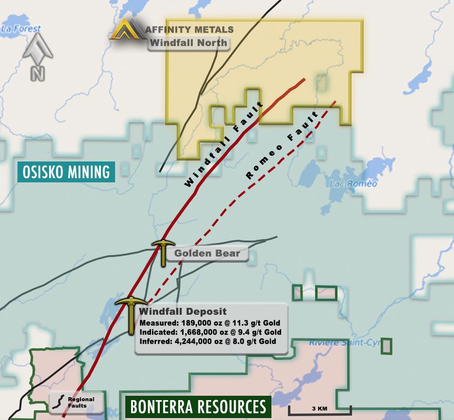 For Affinity Metals and its shareholders this provides encouraging validation for the optimism that management has for the property. From discussions with the company, the developments south of their property line have put the project into focus as they prepare for a busy spring exploration season. With the same faulting systems that under tone the world class Windfall deposit and newly discovered Golden Bear, Affinity Metals plans for exploration are taking form as their geology team prepares for their maiden program on the property.