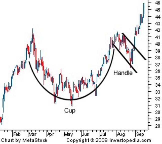 Here is a closer look of the current 'handle' being formed, and next to it the idealized example from an illustration of a classic cup and handle formation.