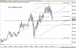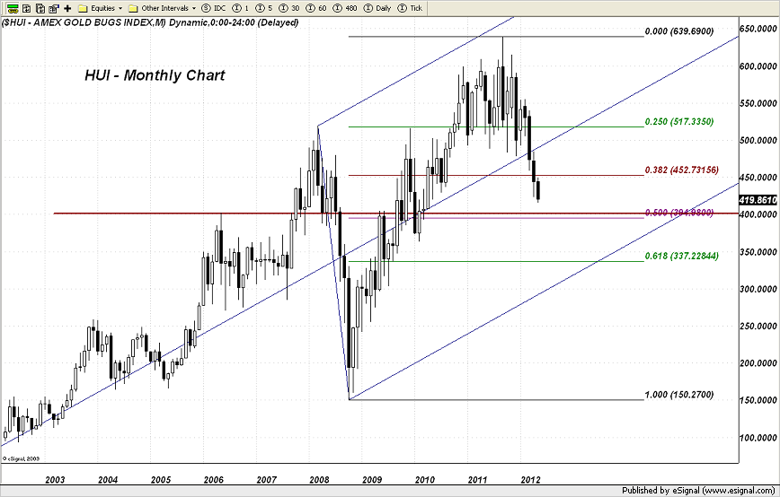 Here is one more look (as if to add insult to injury at this point) the HUI in a monthly chart all by itself.