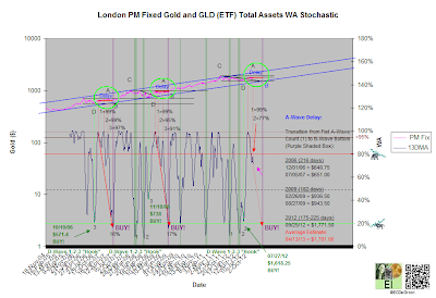 Chart: London PM Fixed Gold and GLD (ETF) Total Assets WA Stochastic