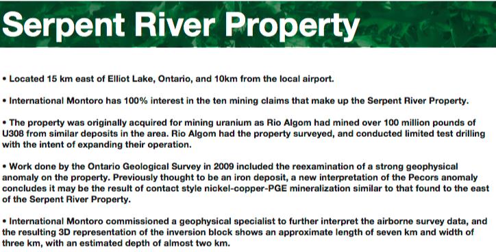 Elliot Lake, Ontario (Serpent River/Pecors Ni-Cu-PGE) + (Uranium – REE’s)