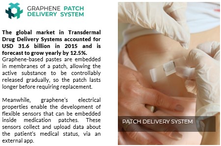 The incorporation of graphene paste into existing transdermal-patch technology permits a more controlled and gradual release of its active substance. Not only does this extend the therapeutic life of these medicated transdermal patches – in the case of opioid-based patches for pain relief – but it also reduces the quantity of opioid required in the patch by roughly 20 percent. A reduction in the potential for opioid abuse.